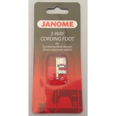 Janome 3-Way Cording Foot - Category DProduct Code: 202085001The 3-Way cording foot will hold o..