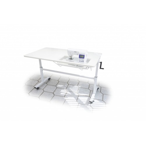- Clever platform mechanism that your sewing machine sits on which can either be dropped for flatbed use (using an inset) or raised for free-arm and embroidery arm use.