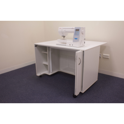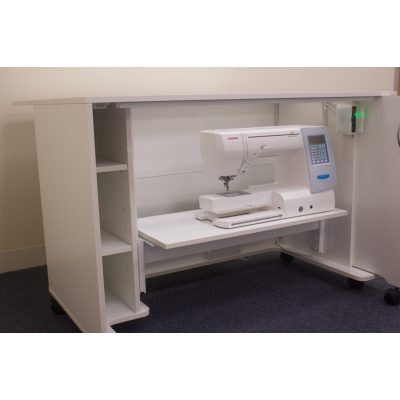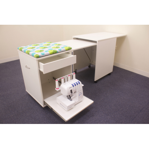 - Sliding shelf to store your Overlocker with a drawer for accessories.