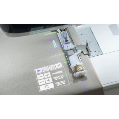 See your embroidery designs, stitches, buttonholes and even sewing guidelines spread out before you with the 200 x 127mm projector area – an increase of 2.6x from the Luminaire XP3.