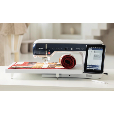 Expand your creative horizons with Brother’s largest ever flatbed workspace (450cm2) and long arm (358mm) and Brother’s largest ever embroidery hoop (465 x 297mm).