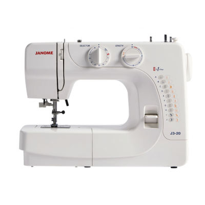An upgraded version of the J3-18 with 16 utility stitches and 4 decorative stitches. It also features an automatic 1-step buttonhole. This is a good all round machine.