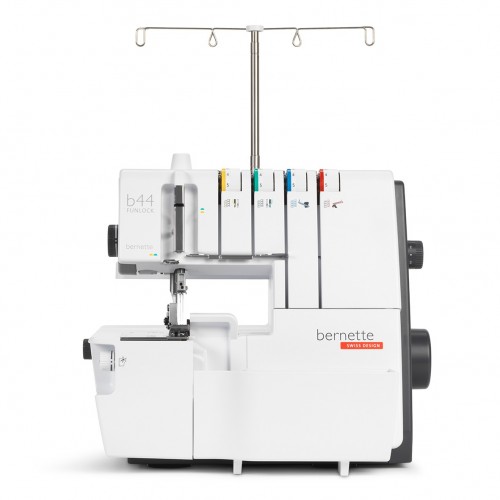 The color-coded, open thread path makes the bernette Funlock 44 easy to thread by following the colored markings. A separate needle threader and lower looper threading mechanism also make threading easier.