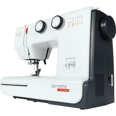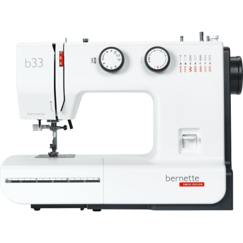 The bernette 33 mechanical sewing machine with stylish Swiss design is the perfect model for beginners. Its simple operation makes it easier to learn the basics of sewing. This machine is durable and robust with excellent stitch quality and all the functions a new sewist will need. All the settings can be adjusted by turning the two knobs. The bernette 33 offers 15 stitches, including buttonholes, and has a maximum stitch width of 5 mm. The 2-step presser foot lift, the needle threader and the manual thread cutter make it easy to thread the machine and get started. 5 different snap-on presser feet are included with the bernette 33.